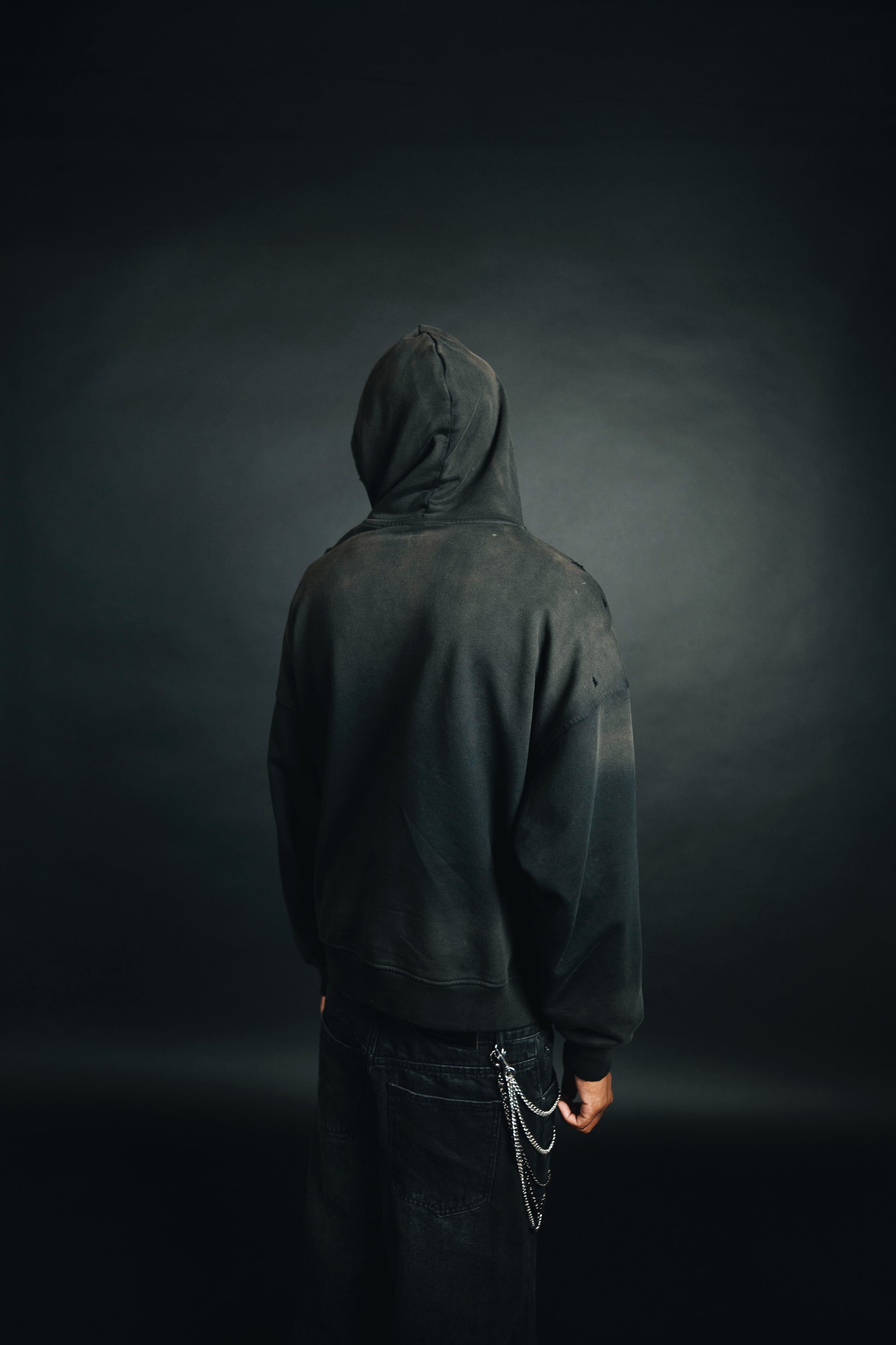 This 100% cotton hoodie pairs a sun-faded wash with distressed detailing to capture authentic vintage streetwear energy. Oversized proportions and grunge-inspired touches make it ideal for layering or wearing as a bold statement piece, blending comfort, casual ease, and standout appeal in modern everyday fashion.
